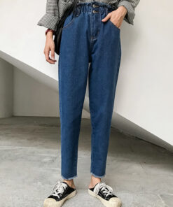 Loose dark blue high waist jeans