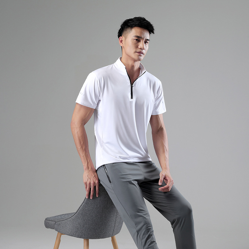 Small stand collar men’s sports ice silk quick drying t-shirt men’s outdoor sports top