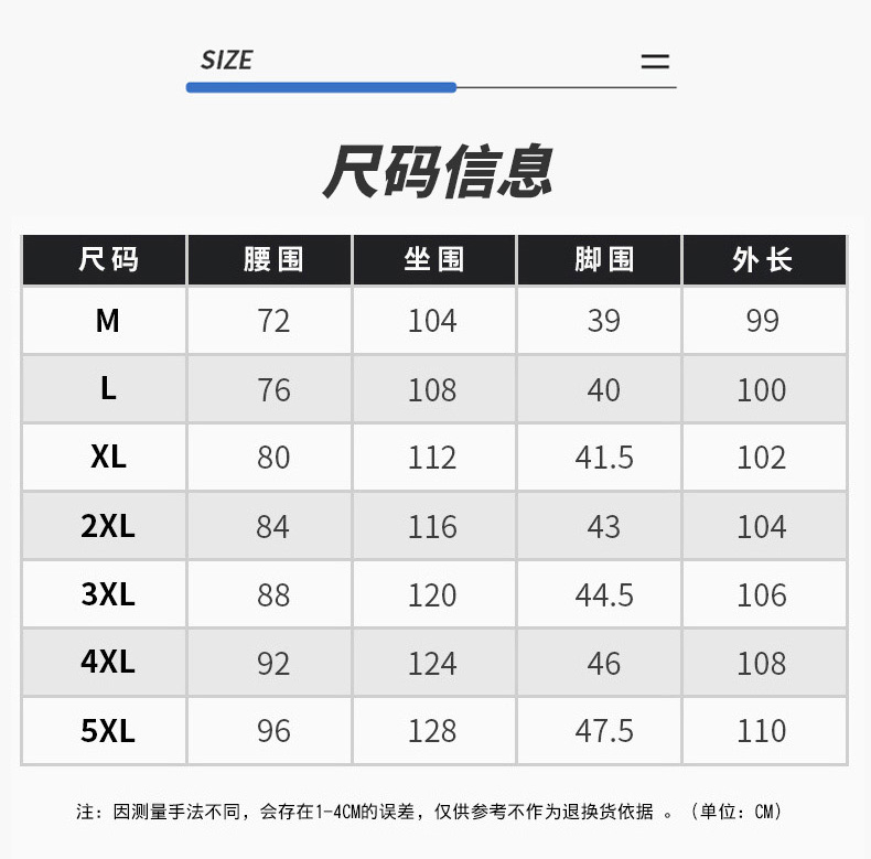 M, L, XL, XXL, 3XL, 4XL, 5XL